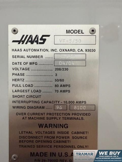 The Haas VF-5/50 is an exclusive part of our Vertical Machining Centers inventory which we own and service. We're the international CNC specialists with the best guarantee in the industry.